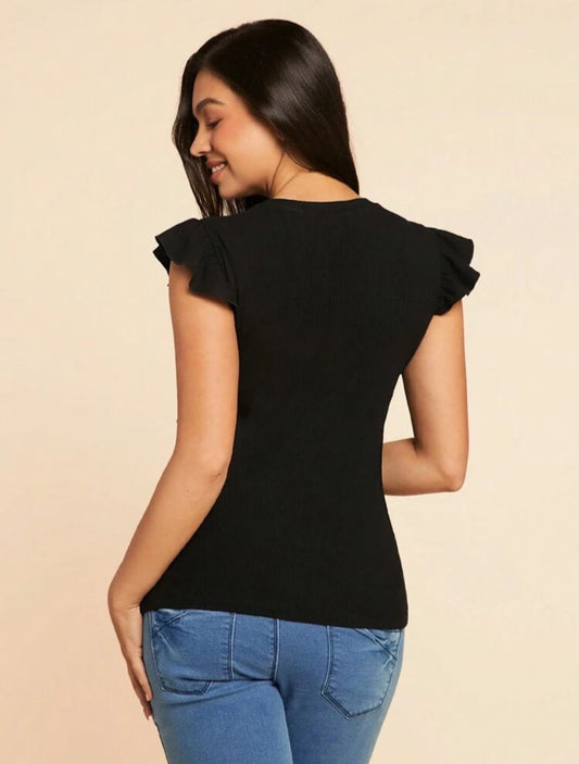 Round Neck Ruffle Trim Sleeves nursing T-Shirt