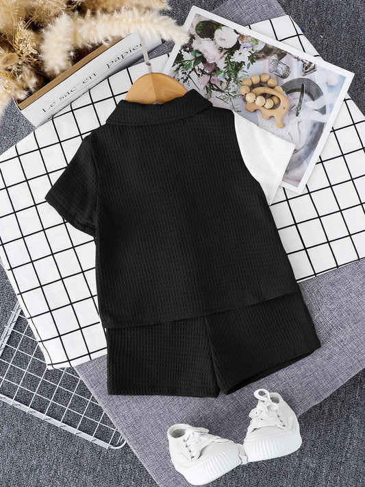 Young Boys Solid Polo Tee & Shorts Set | 4Y-7Y