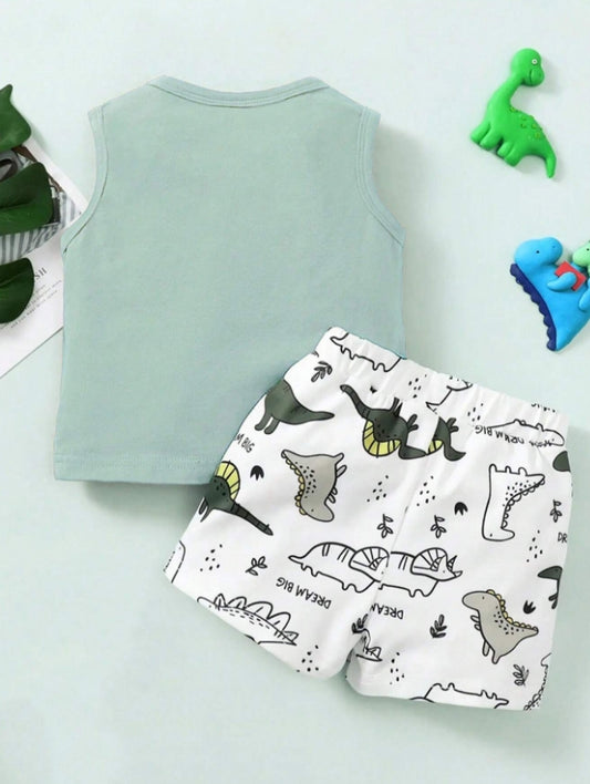 Baby Boys Dino White top & Short Set | 6M-3Y