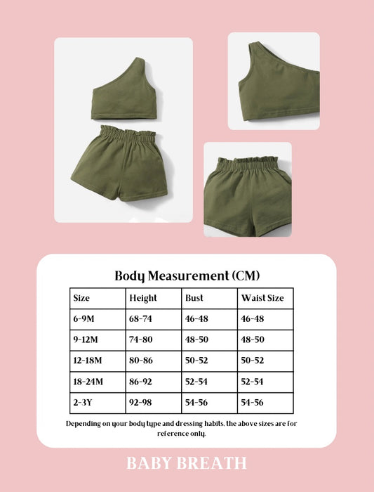 Baby Girls Forest Green One Shoulder Top & Short Set | 6M-3Y