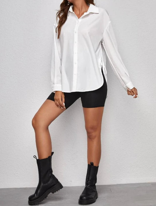 Maternity Drop Shoulder Knot Side Shirt With Long Sleeve - White