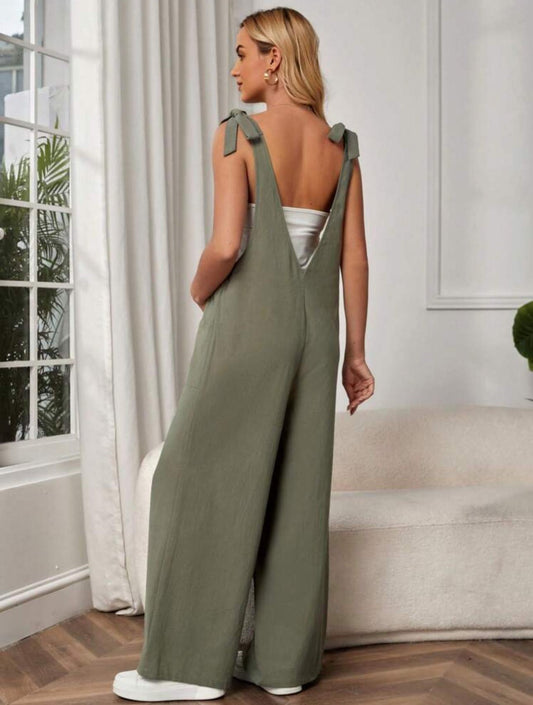 Maternity Tie Shoulder Patch Pocket Wide Leg Overall Jumpsuit Without Tube Top