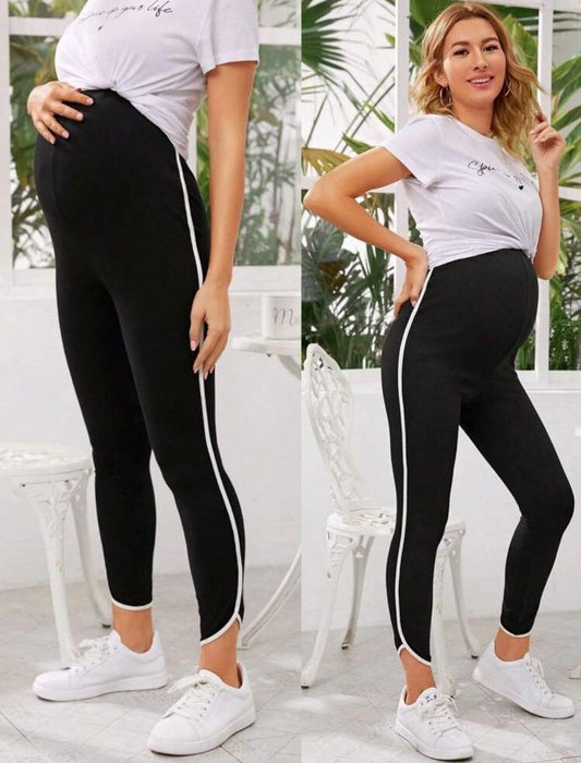 Maternity Contrast Binding Curved Hem Leggings