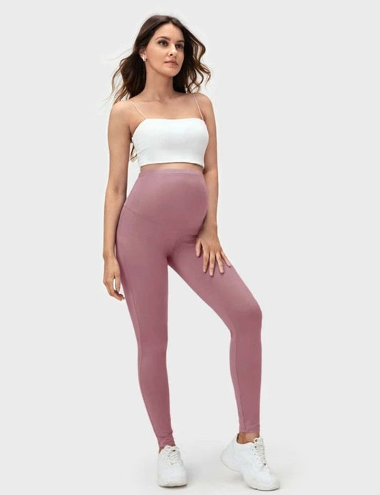 Maternity basic Wide Waistband Solid Leggings - Pink