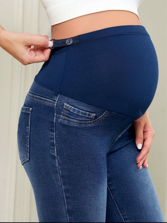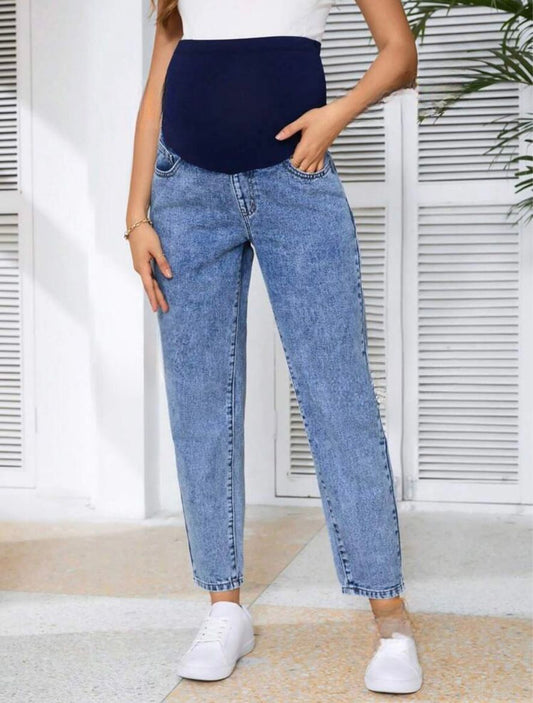 Maternity Wide Waistband Adjustable Waist Straight Leg Jeans - Dark Wash