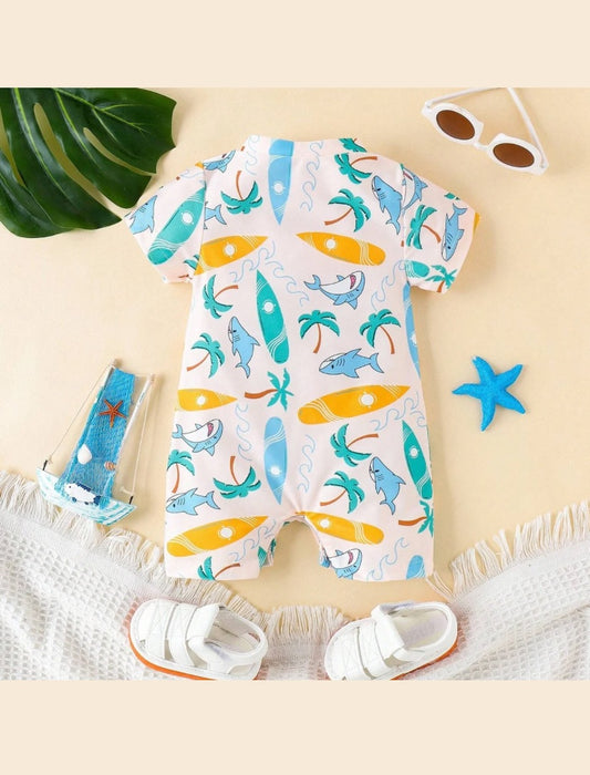 New Born Animal Print Short Sleeve One Piece Swimsuit