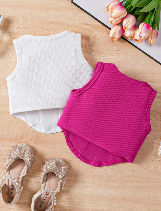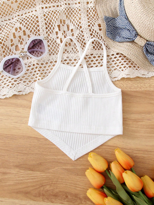 Baby Girls Knitted Solid Cropped Casual Tank Tops