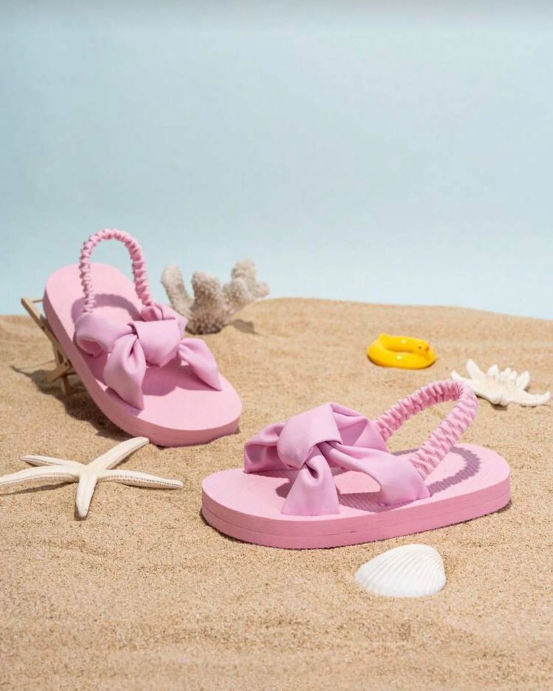 Light Pink Bow Details Elastic Slingback Straps Sandals